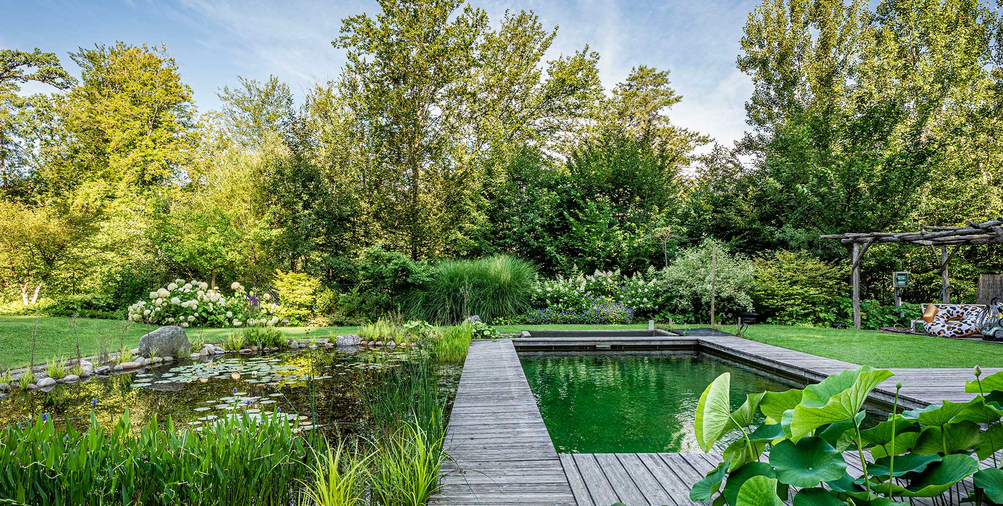 Schwimmteiche und Naturpools sind handgefertigte Gewässersysteme, die sich sowohl in den Naturgarten, als auch in den architektonisch gestylten Freiraum perfekt einfügen – und das rein biologisch ohne jeglichen Zusatz von Chlor oder anderen chemischen Mitteln.